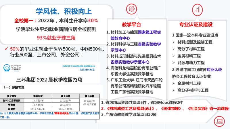 1、材料成型及控制工程(国家一流本科专业建设点、国家特色专业建设点、广东省名牌专业、广东省特色专业)